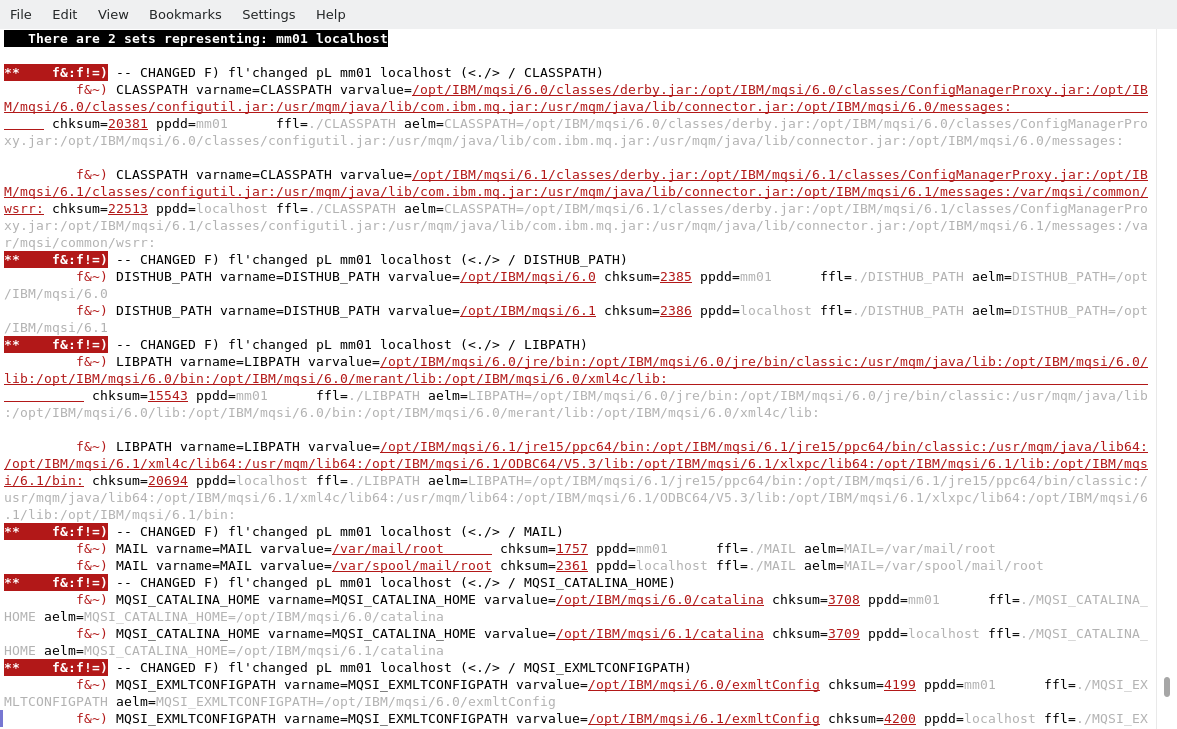 # envcompare.pl -host localhost -host mm01