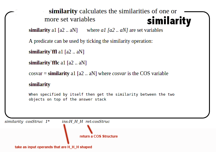 Figure C.3 shows the syntax box of the similarity operator that takes H_H_H shaped operands but returns a COS structure.