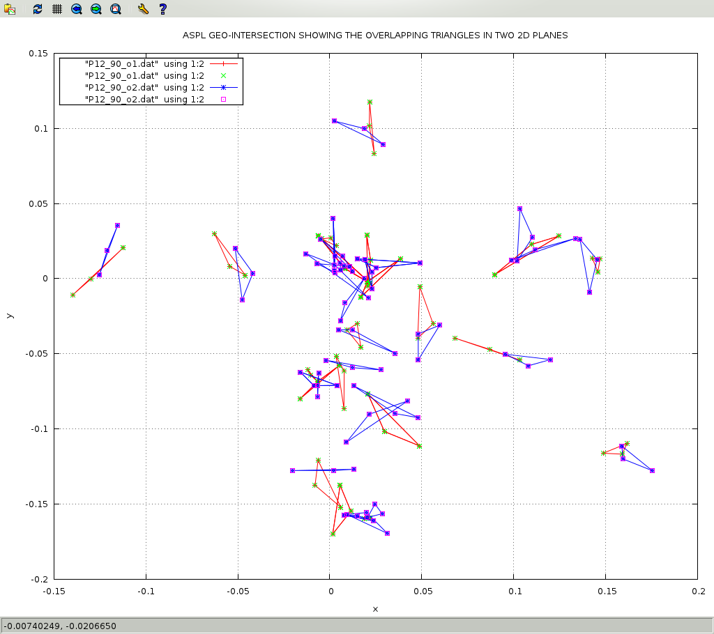gpdata3 P12_90_o1.dat,1:2wlp P12_90_o1.dat,1:2wp P12_90_o2.dat,1:2wlp P12_90_o2.dat,1:2wp -title "ASPL GEO-INTERSECTION SHOWING THE OVERLAPPING TRIANGLES IN TWO 2D PLANES"