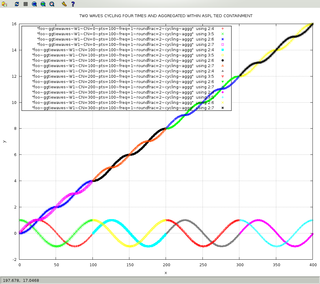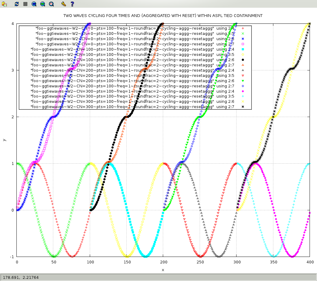are persisted during the runtime of the element grouping class container.ASPL's tied-containment provides the programmer with the capability toIn the following example, we demonstrate how subsequent calls to the GG-function ggtiewaves(), where attributes are hooked to tied oscillator functions, can cycle periodically and the number of points is incremented (with each cycle).